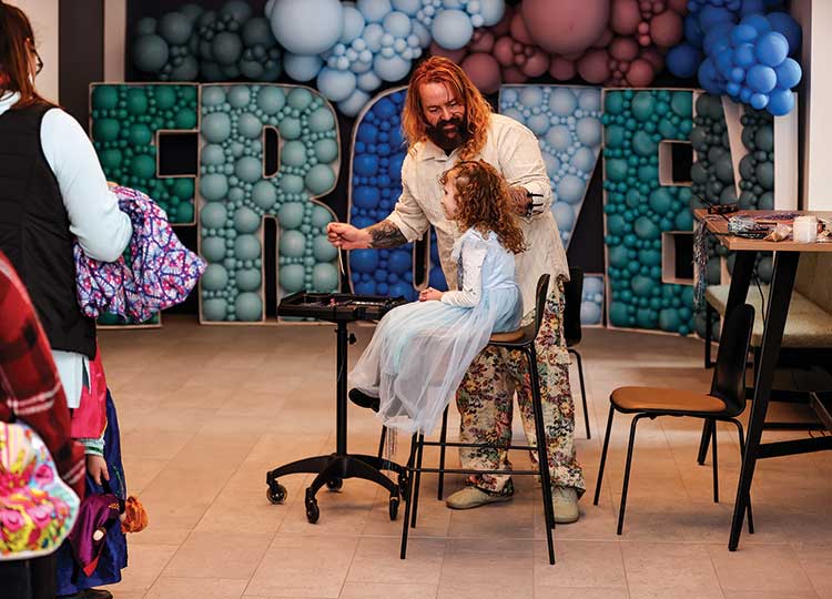 During FROST @ Downtown, The Globe lobby has a Frozen-themed balloon installation perfect for snapping a memorable picture; hot chocolate and cookies for sale in our main floor lobby; and hair stations set up to give you the perfect Elsa braids or snowy shimmer! (Hair styling donations of $5-20)