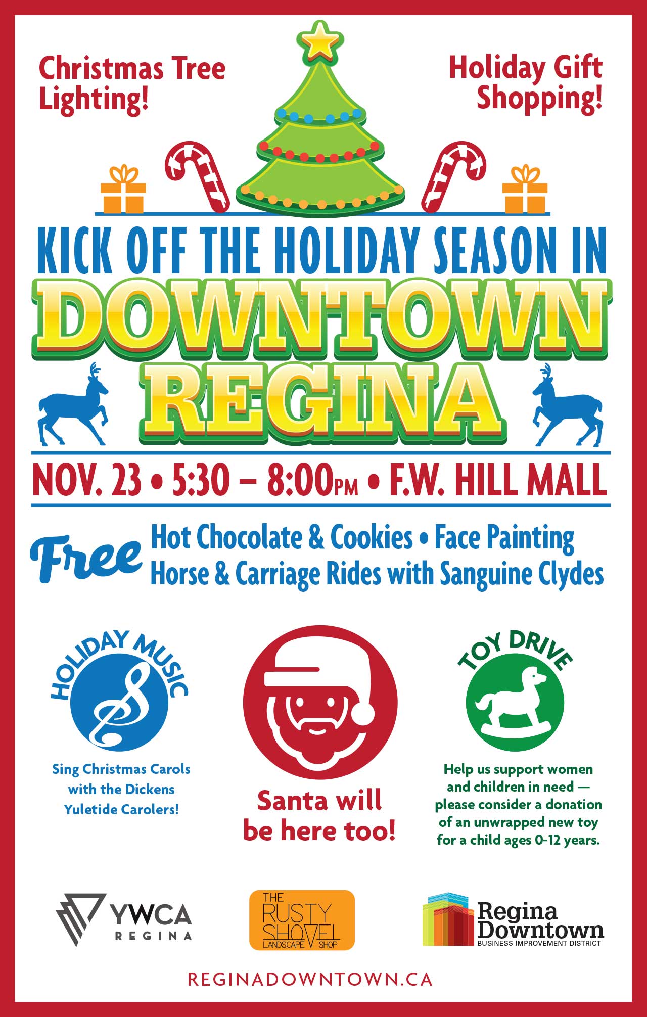 NOVEMBER 23 • 5:30-8PM • F.W. HILL MALL by Regina Downtown | Nov 3, 2017 | Uncategorized Prev Post Downtown Cultural Trailway Tour, Sept. 9 Next Post AT THE GLOBE THEATRE THRU DEC. 24 You may also like Regina Farmers’ Market Krugofest Downtown’s Visitor Service Pavilion Reopens
